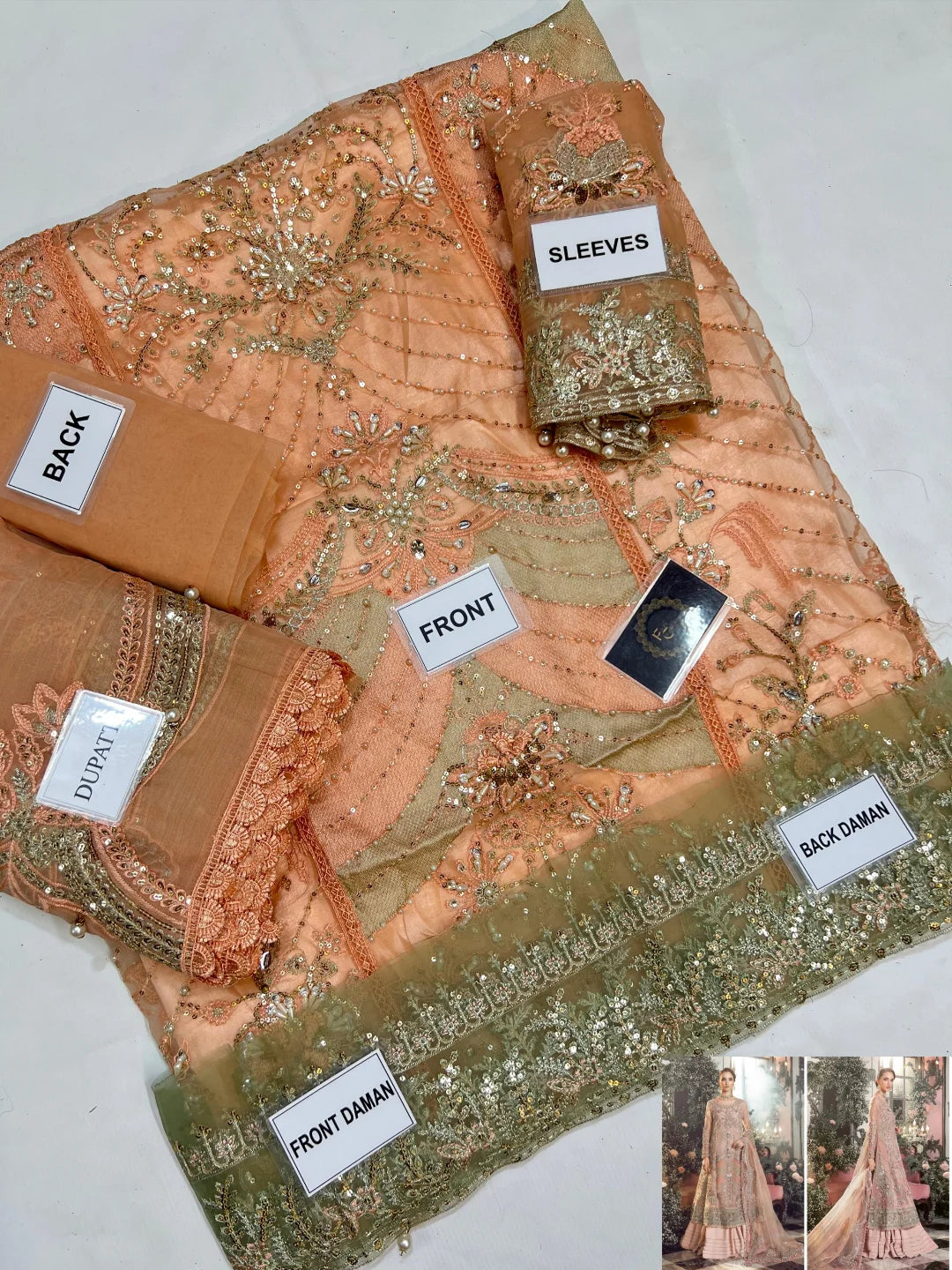 Fazr collection presesnting 3 pc chiffon suit with silk trouser FC-46